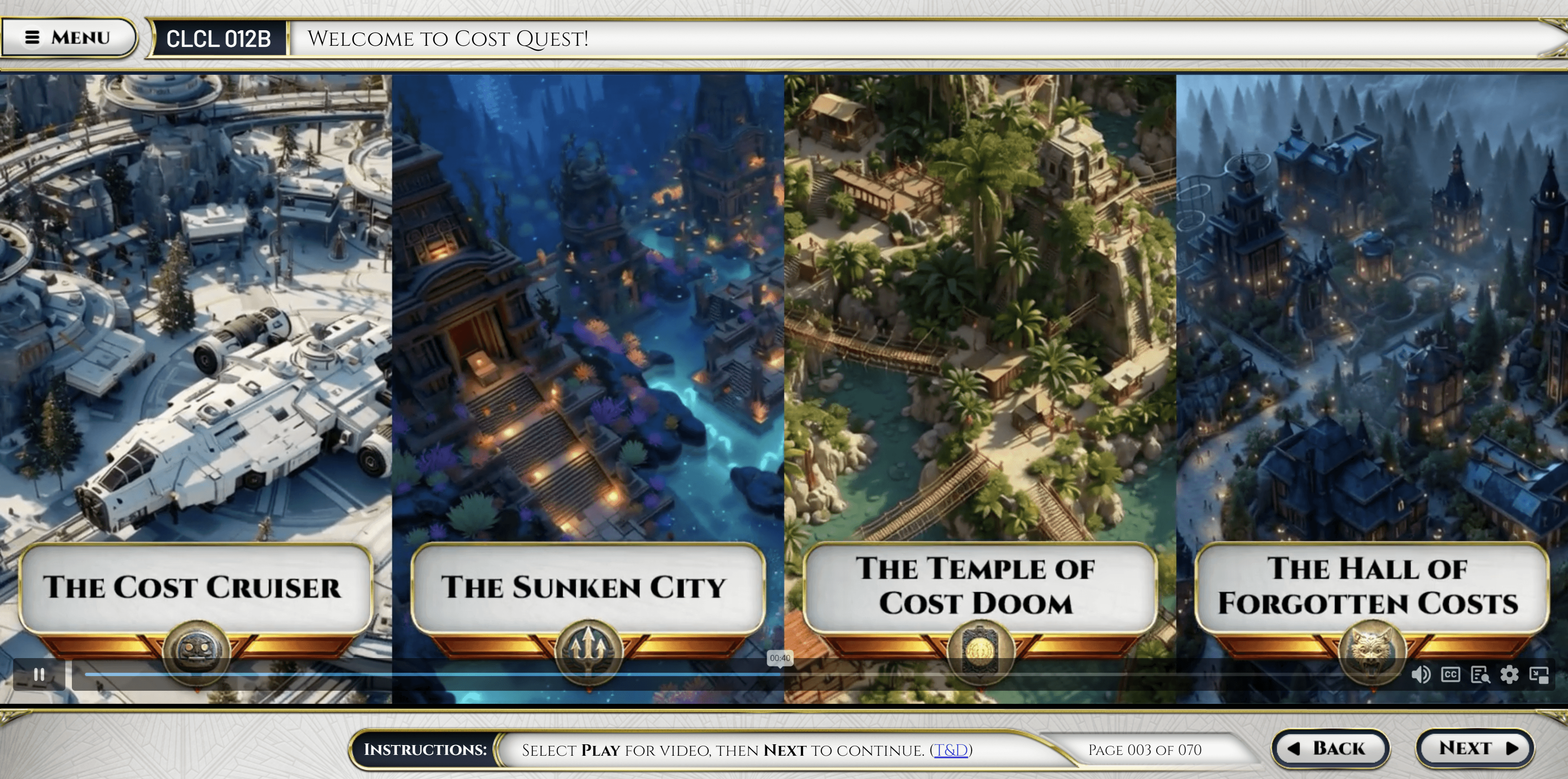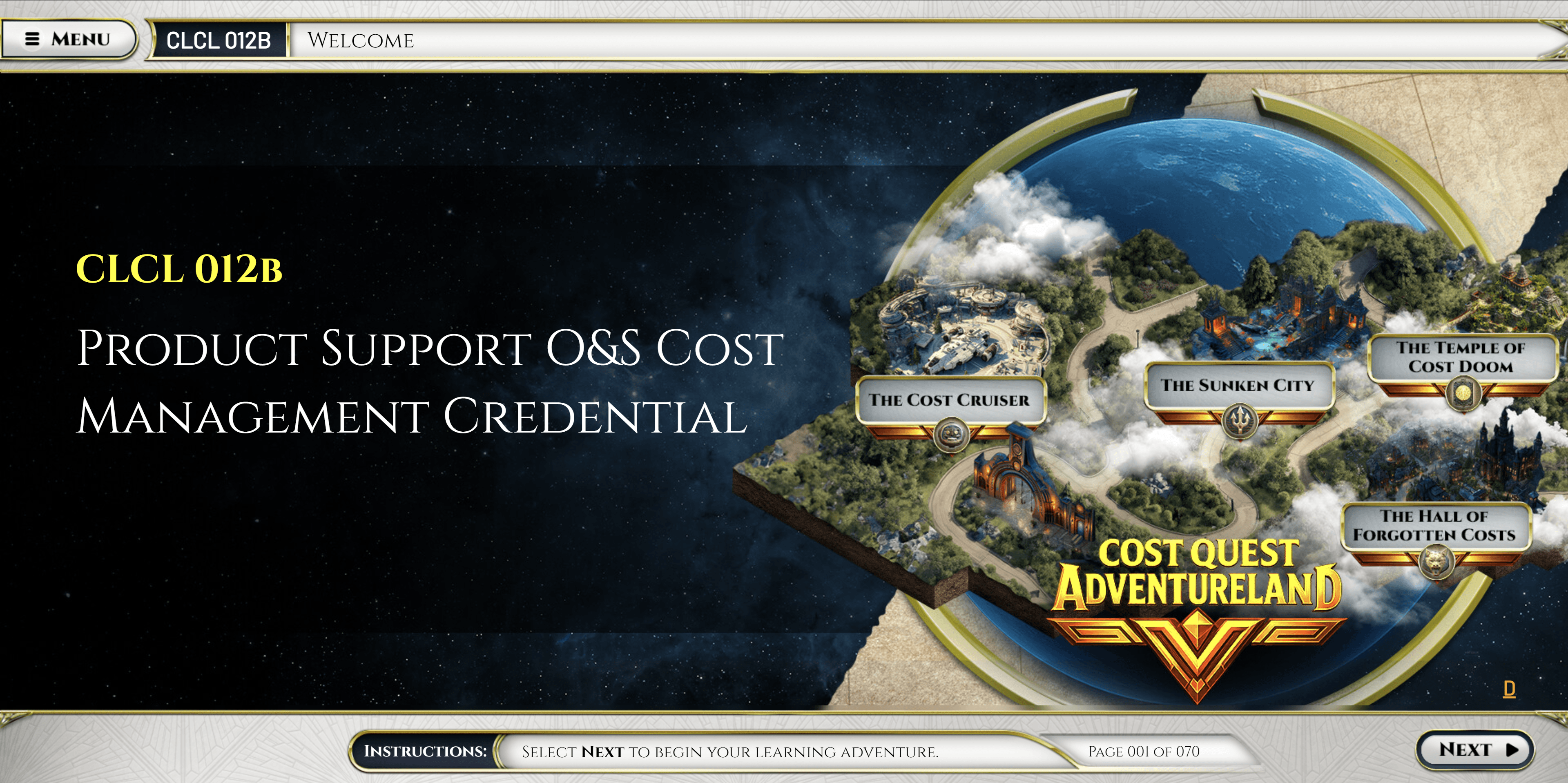 The journey begins in the Amusement Park, where early cost decisions feel safe, familiar, and wildly overconfident. Things escalate aboard the Cost Cruiser in Cost Wars, where small sustainment choices balloon into galaxy-sized consequences. From there, learners descend into the Sunken City of Atlantis, uncovering hidden risks that sink faster than optimistic assumptions.