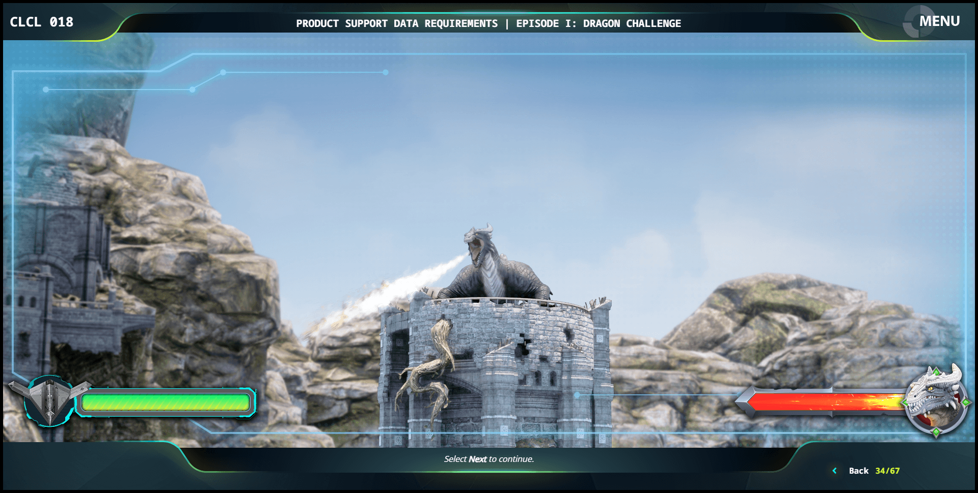 A centerpiece of the experience was the Dragon Challenge, an Unreal Engine–powered interactive game that reframed data rights decisions as a strategic battle. Learners navigated animated environments, evaluated tradeoffs, and made contract decisions that determined whether the dragon was defeated or the program paid the price. The use of real-time 3D environments allowed abstract contract choices to become visual, immediate, and difficult to ignore.