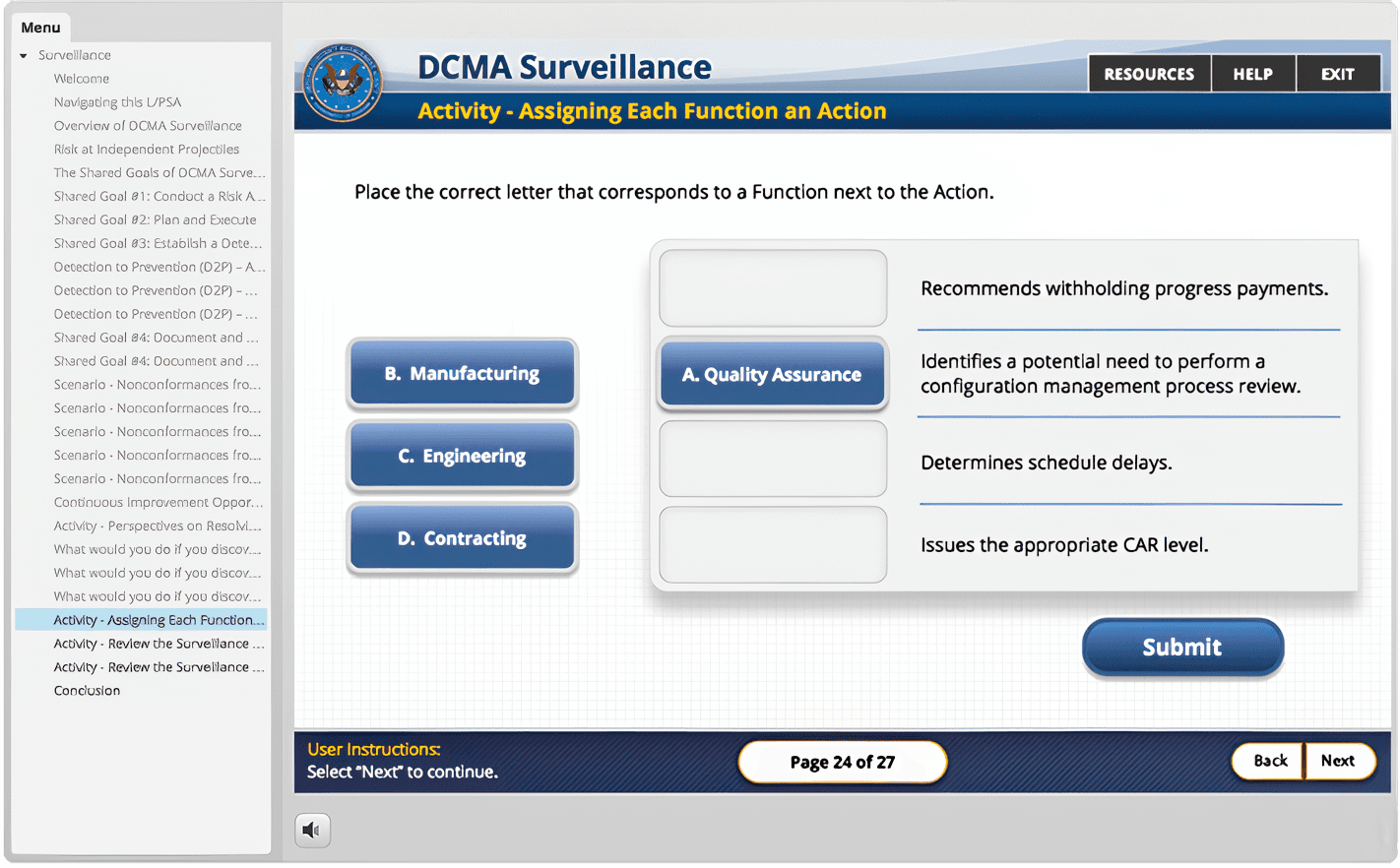 This project helped introduce DAU to a more modern and flexible approach to eLearning development after years of relying on a much more limited legacy platform. The goal was to create an experience that helped new employees understand what DCMA is, what the agency does, and how its many functions support the federal government, while also demonstrating the value of newer development tools and design approaches.